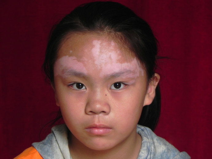 3、早期白癜风在白斑与正常皮肤之间有一条色素带,有的色素带的颜色很明显,但是随着白斑的扩大和白癜风病情的加重,这条色素带会表现为颜色越来越浅。以至模糊不清。有的初期白癜风的色素带很模糊,很难及时的辨认是不是白癜风。